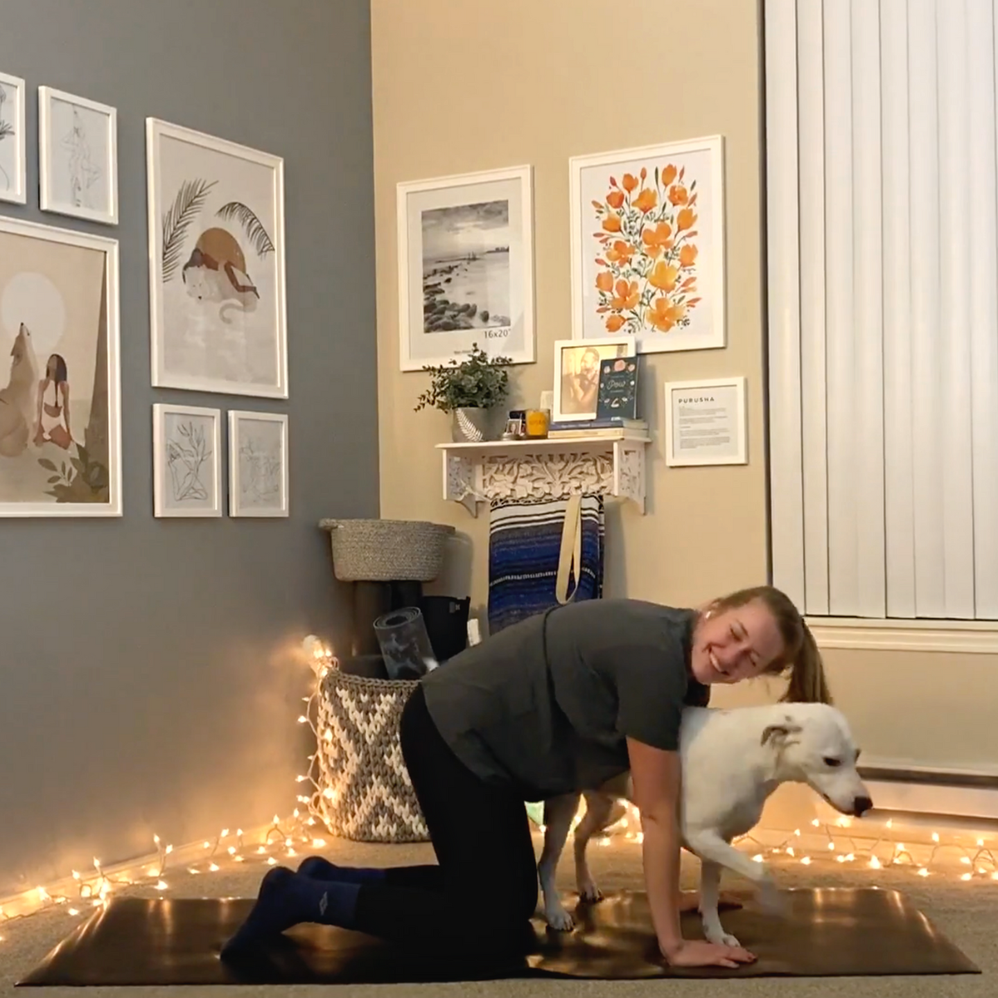 My classes aren’t filmed in a fancy studio. This is truly as real as it gets-- from my home, to yours! It’s me, my mat, an iPhone, and my pup, Bodie. Classes are unscripted, raw, and always evolving. Virtually all of the classes I teach are created on the spot, 100% customized for each group of students that take my weekly live classes.